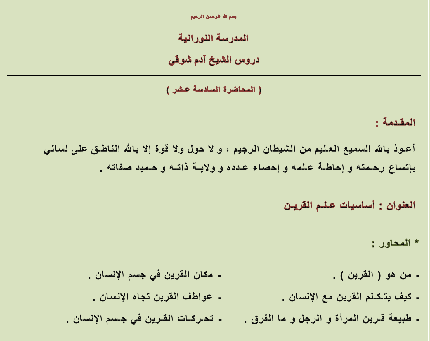 – طبيعة قـرين المرأة و الرجل و ما الفرق . – تحـركـات القـرين في جـسم الإنسان .